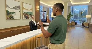 Entre as principais tendências que estão surgindo, o destaque é o check-in automatizado. Esse processo, que por décadas foi sinônimo de filas e fichas preenchidas à mão, agora está sendo totalmente digitalizado. Assim como nas companhias aéreas, o hóspede pode fazer todo o seu registro por meio de aplicativo, tablet ou totem, antes mesmo de chegar à recepção. É simples, rápido e eficiente. Quando o cliente chega ao hotel, ele apenas confirma sua entrada e todo o sistema já reconhece suas informações.