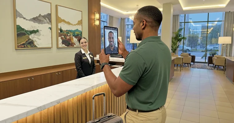 Entre as principais tendências que estão surgindo, o destaque é o check-in automatizado. Esse processo, que por décadas foi sinônimo de filas e fichas preenchidas à mão, agora está sendo totalmente digitalizado. Assim como nas companhias aéreas, o hóspede pode fazer todo o seu registro por meio de aplicativo, tablet ou totem, antes mesmo de chegar à recepção. É simples, rápido e eficiente. Quando o cliente chega ao hotel, ele apenas confirma sua entrada e todo o sistema já reconhece suas informações.