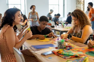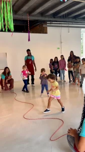 Oficinas de arte e brincadeiras de criança, como pular corda, soprar catavento e correr no pique-pega, fazem parte de uma proposta recreativa e, ao mesmo tempo, educativa, oferecida gratuitamente pelo museu em programações especiais. O espaço dessas oficinas fica no andar inferior ao da exposição, com acesso também por elevador. A psicóloga Mila Pacheco trouxe a filha de 2 anos pela primeira vez e elogia o educativo do museu: “São atividades que minha filha nunca tinha feito e é uma novidade aqui na cidade. As crianças estão muito felizes com esse evento recreativo”. E não são só as crianças, já que os educadores também se divertem ao promover as brincadeiras. “Nós acreditamos que educação e brincar têm tudo a ver. Aqui, a criança vivencia uma escola sem paredes com oficinas educativas”, define o educador Samuel Romano.